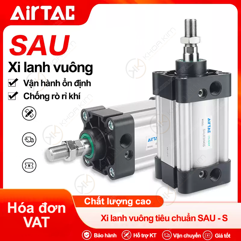 Khoa Kim Việt Nam – Cung cấp xi lanh khí nén Airtac SAU chính hãng, đầy đủ mã đường kính 32–100 mm, hành trình 25–1000 mm, hỗ trợ tư vấn chọn nhanh theo tải và không gian lắp đặt. Lưu ý: Thông số chi tiết (áp suất làm việc, lực đẩy, lực kéo, khối lượng) cần đối chiếu datasheet chính thức theo từng mã SAU cụ thể. Dưới đây là đầy đủ các mã SAU bạn cung cấp, chia theo đường kính nòng để tiện tra cứu & đặt hàng. Gửi mã SAU32/40/50/63/80/100 + hành trình hoặc chỉ cần cung cấp lực – hành trình – không gian lắp,
