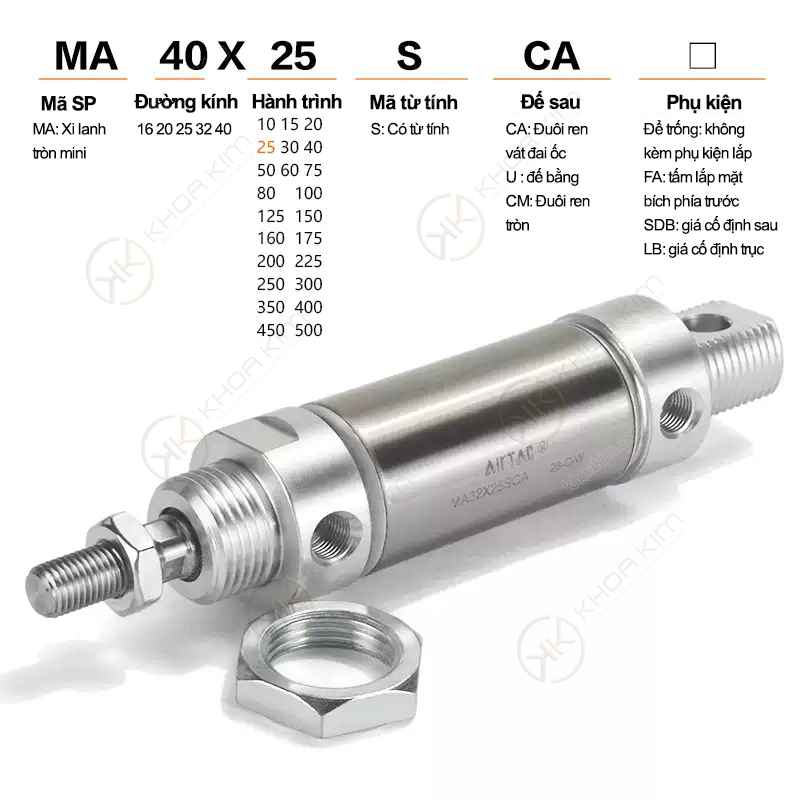 Bảng mã sản phẩm đầy đủ – Xi lanh tròn inox mini Airtac MA Series