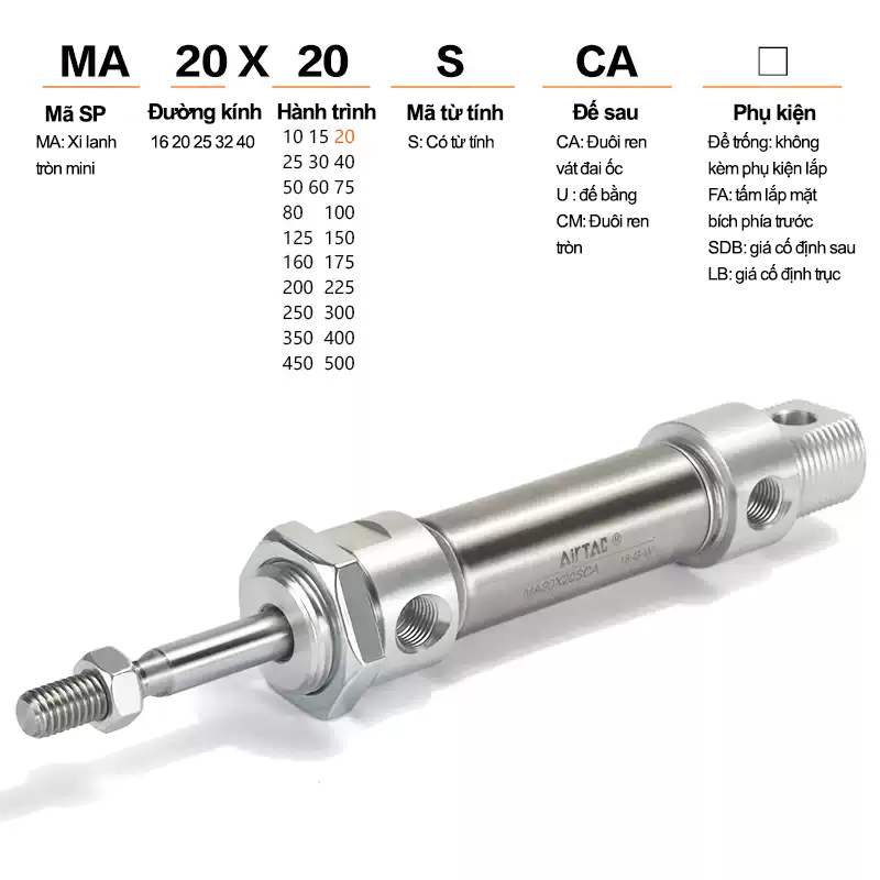 Bảng mã sản phẩm đầy đủ – Xi lanh tròn mini đế bằng MA–SU Airtac