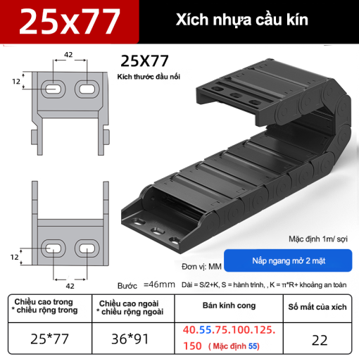 Xích nhựa cầu nắp kín XN25x77 NK ( Kích thước trong 25x77mm )
