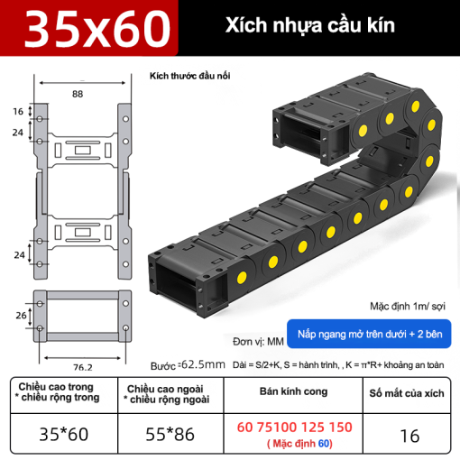 Xích nhựa cầu nắp kín XN35x75 CA NK ( Kích thước trong 35x75mm )