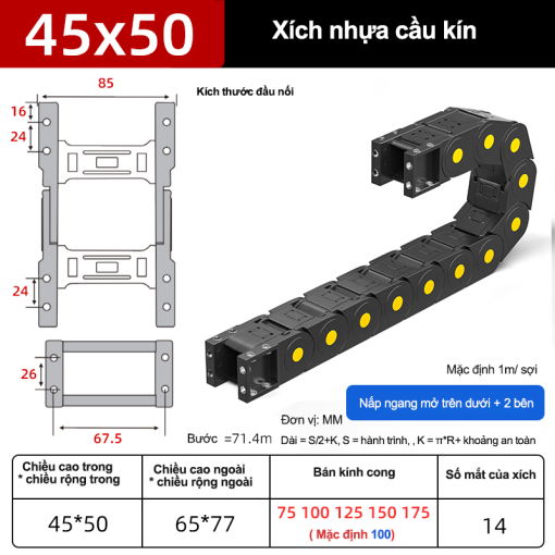 Xích nhựa cầu nắp kín XN45x50 CA NK ( Kích thước trong 45x50mm )