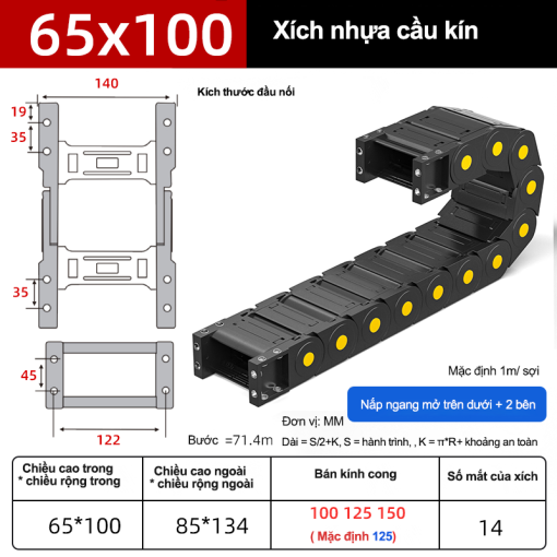 Xích nhựa cầu nắp kín XN65x100 CA NK ( Kích thước trong 65x100mm )