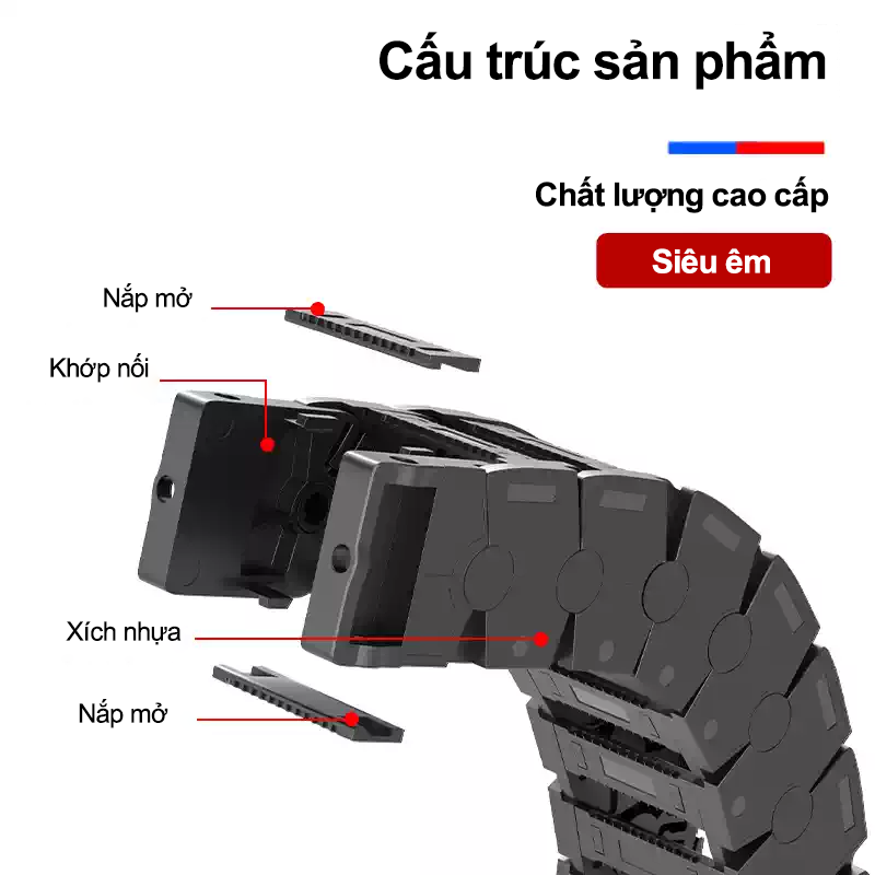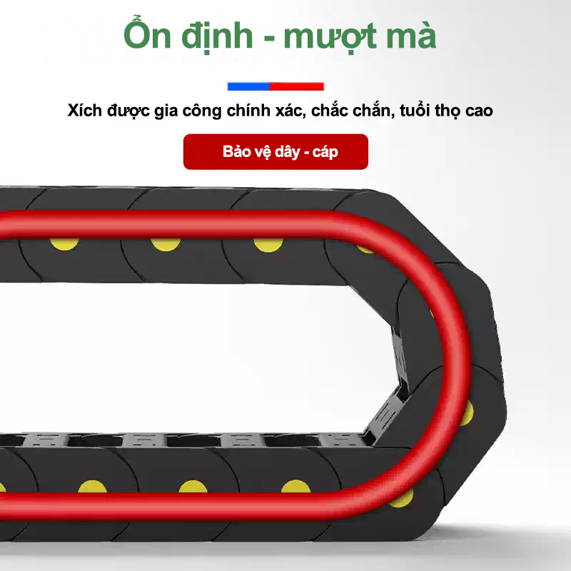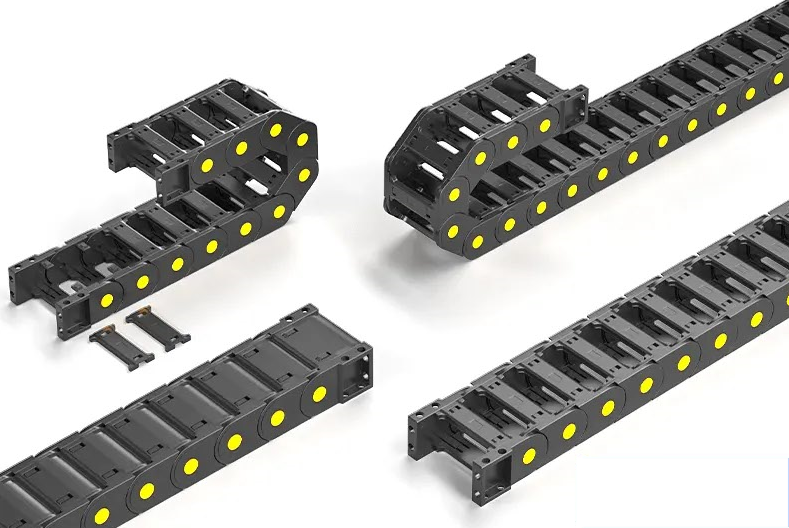 Xích nhựa cầu (cable carrier/energy chain) dẫn hướng và bảo vệ cáp điện/ống khí/ống thủy lực trong chuyển động. Dải series 5*–65* bao phủ hầu hết ứng dụng: máy CNC, robot, băng tải đến cẩu trục hành trình dài.